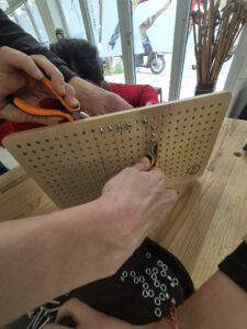 Κατόπιν πήραμε ξύλινα πάνελ και χρησιμοποιώντας βίδες, παξιμάδια και πένσες, έπρεπε σε καθορισμένο χρόνο να φτιάξουμε τα γράμματα.