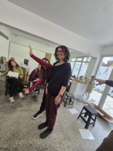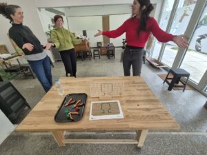 Κεντρικό αντικείμενο της δράσης ήταν η κατασκευή γραμμάτων της αλφαβήτου και πώς μπορεί να διδαχθεί στα παιδιά με τη βοήθεια της μαστορικής. Αρχικά αναπαραστήσαμε τα γράμματα με …παντομίμα!
