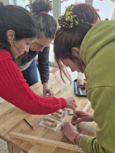Κατόπιν πήραμε ξύλινα πάνελ και χρησιμοποιώντας βίδες, παξιμάδια και πένσες, έπρεπε σε καθορισμένο χρόνο να φτιάξουμε τα γράμματα.