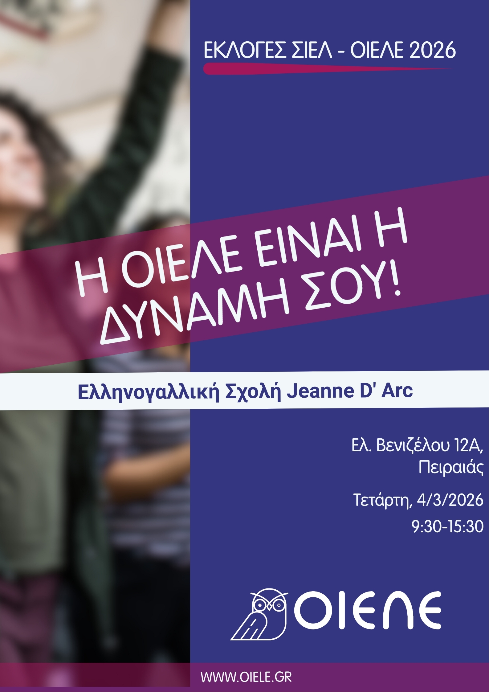 Αύριο Τετάρτη, 4/3, οι εκλογές ΟΙΕΛΕ-ΣΙΕΛ στην Ελληνογαλλική Σχολή Jeanne D’ Arc