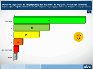 • Ένα 72% δηλώνει ότι επιθυμεί να εργάζεται σε επιχειρήσεις που σέβονται το περιβάλλον και την κοινωνία.