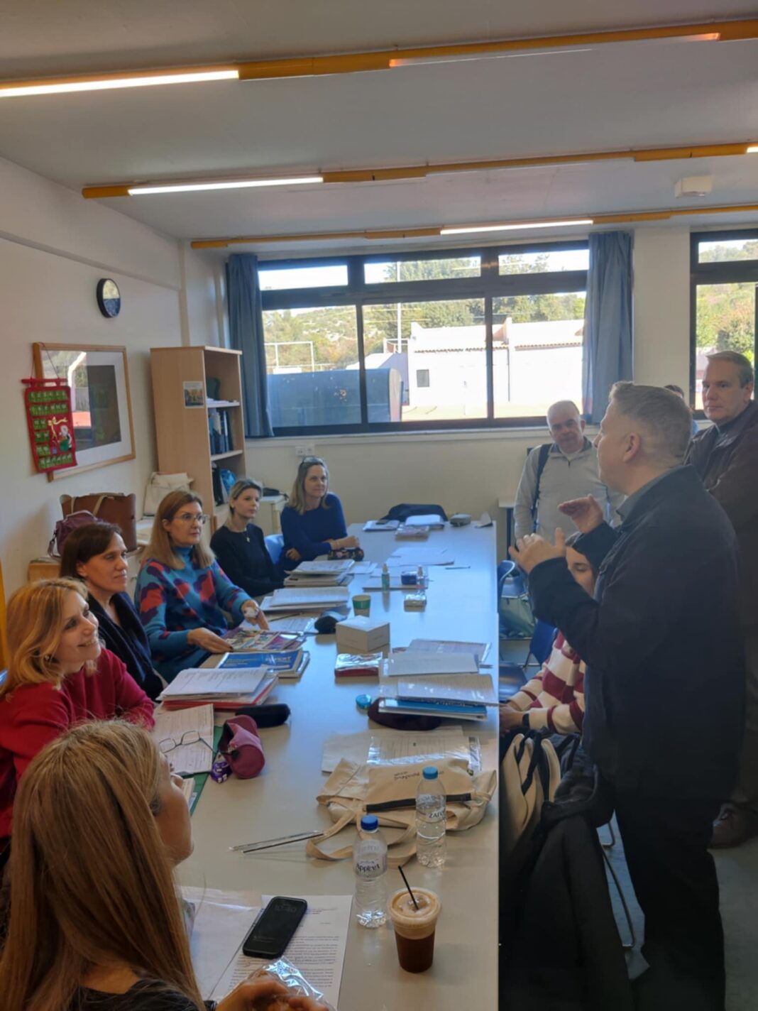 Συνοδευόμενος από τους εκπαιδευτικούς του σχολείου (που είναι και μέλη στο ΔΣ της Ομοσπονδίας) Δημήτρη Κατσορίδα και Φώτη Καραμεσίνη, έκανε ξεχωριστές ενημερώσεις στους εκπαιδευτικούς του Δημοτικού, του Γυμνασίου, του Λυκείου, σε εκπαιδευτικούς ειδικοτήτων και είχε συναντήσεις με τα στελέχη του σχολείου και τον ιδιοκτήτη κ. Λ. Γείτονα.